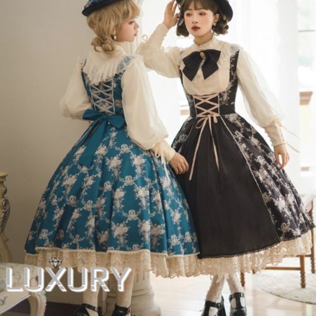 【納期40日】クラシカルロリータ クラロリ ジャンパースカート のみ ひざ下丈 ミモレ丈 ヴィンテージ アンティーク レトロ 古風 ガーリー 優雅 春秋コーデ お茶会 撮影用