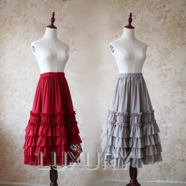 ロリータファッション ゴスロリファッション ゴスロリ 甘ロリ 姫ロリ クラシカルロリータ クラロリ ゴシック スカート 3色 無地 パステルカラー ジェラートカラー マカロンカラー フリル 膝丈 ひざ丈 ミディアム ひざ下丈 ミモレ丈 ロング丈 シフォン レトロ 古風 かわいい loli3074