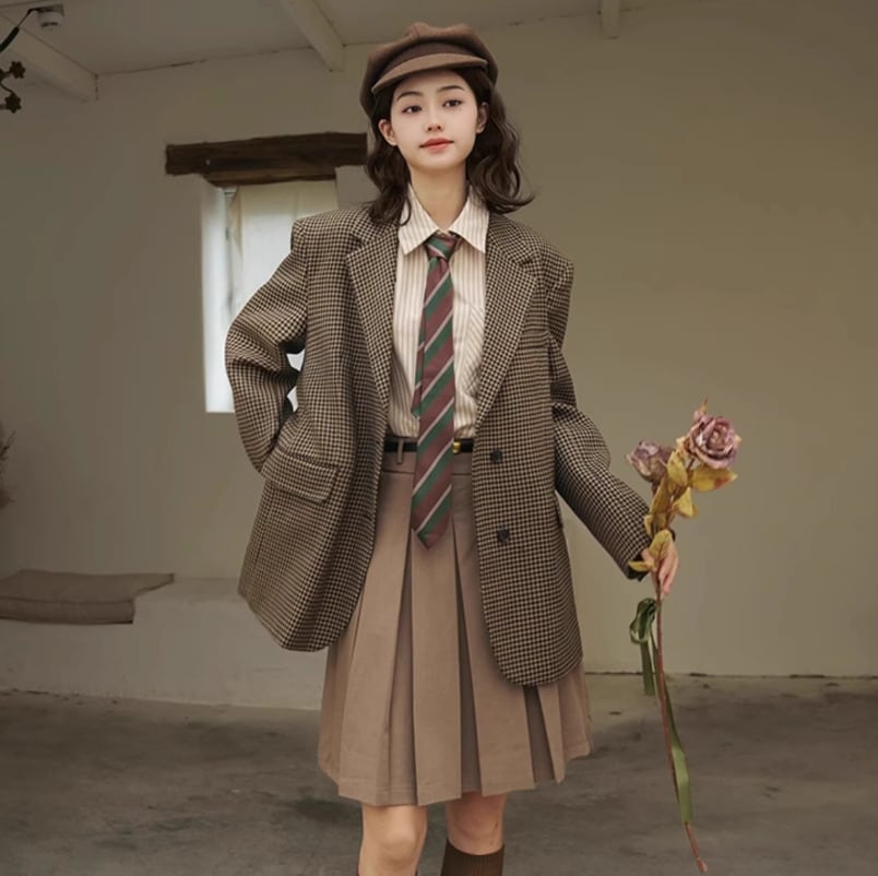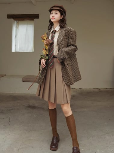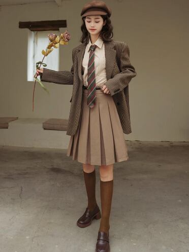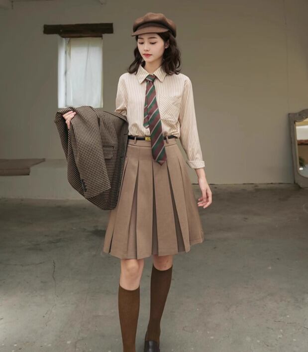 こちらの膝上スカートは、清楚でありながらカジュアルな雰囲気を持ち、英国スタイルを感じさせるデザインが特徴です!