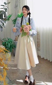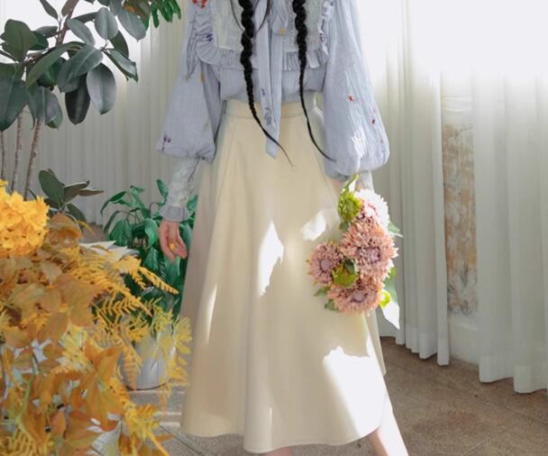 こちらのスカートは、ひざ下丈でAラインのデザインが特徴的で、