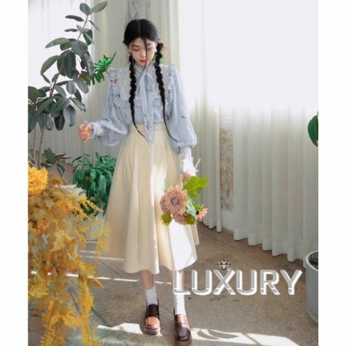 セミロリータ スカート のみ ひざ下丈 Aライン ハイウエスト フレンチクラシカル 大人可愛い カジュアル 冬コーデ 厚手 お茶会 デイリー デート