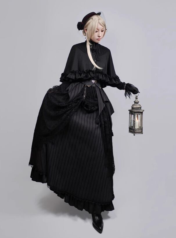 【4/5までの予約受付】ゴスロリファッション ゴスロリ スカート+トレーン のみ ロング丈 Aライン パンク レトロ ヴィンテージ クラシカル 優雅 ビクトリアン 春コーデ お茶会 撮影