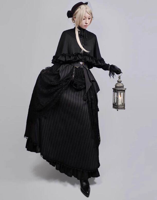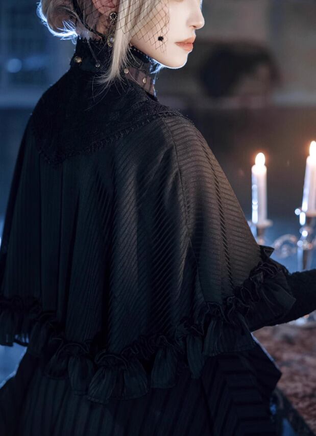 ゴスロリファッション ゴスロリ ケープ のみ ストライプ 立襟 パンク レトロ クラシカル 優雅 ビクトリアン 春コーデ お茶会 撮影