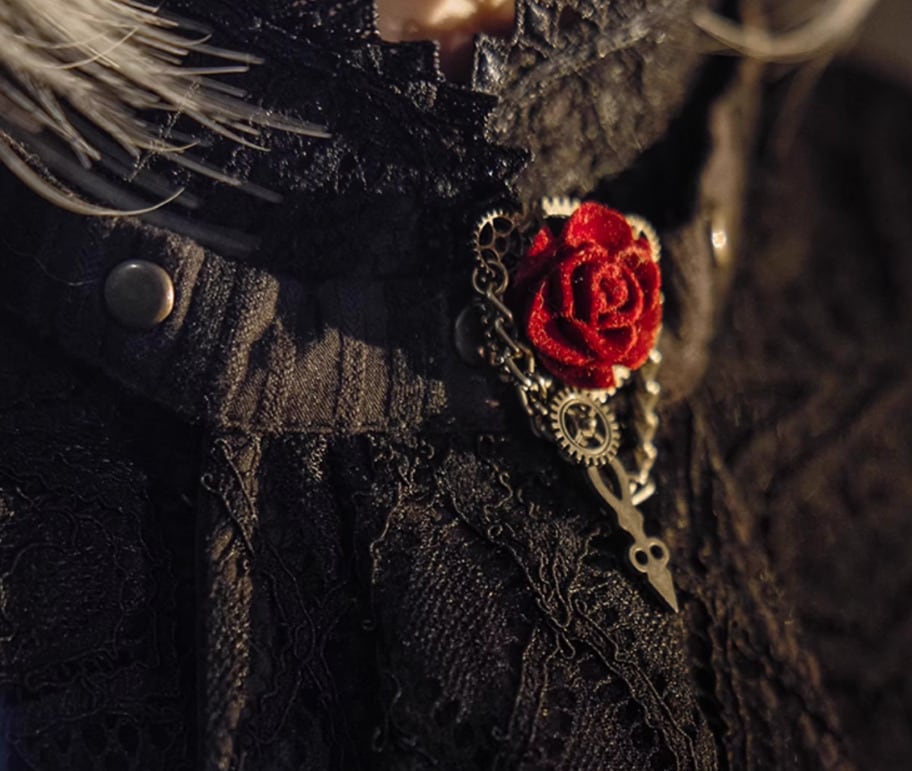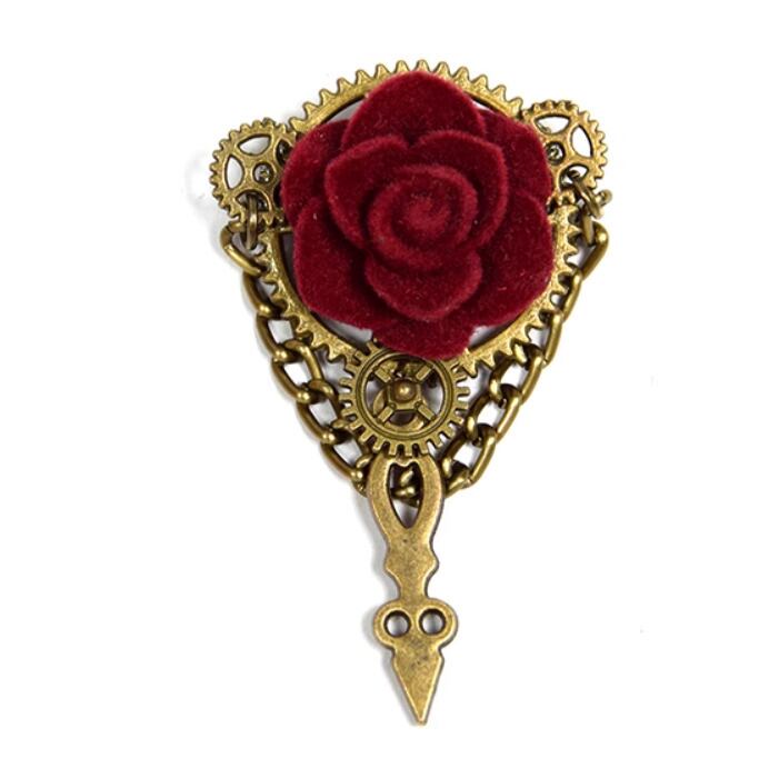 こちらのブローチは、バラと歯車デザインが融合したユニークなスタイルが特徴で、ビクトリアンの雰囲気を漂わせつつ、クラシカルな美しさを引き立てます!