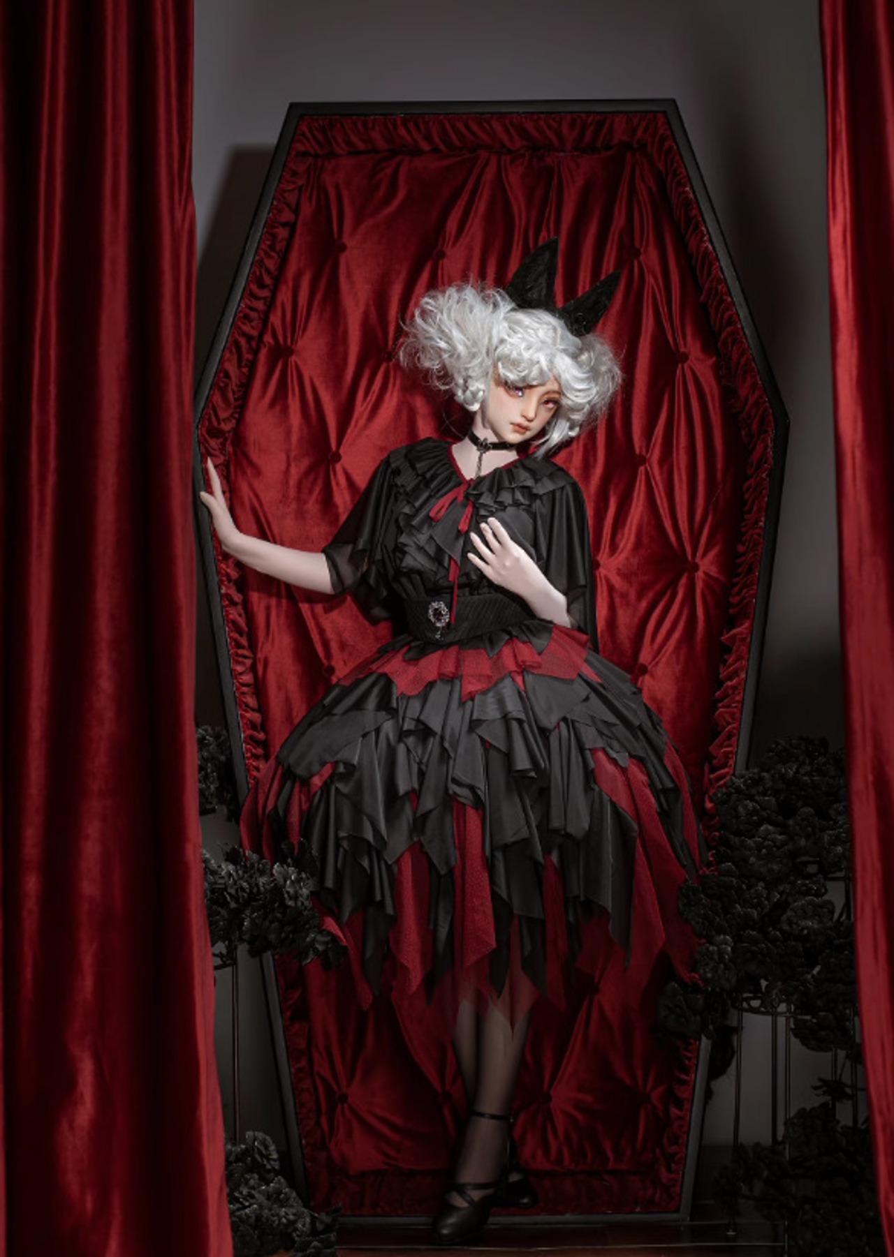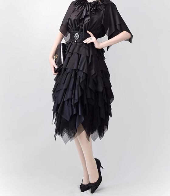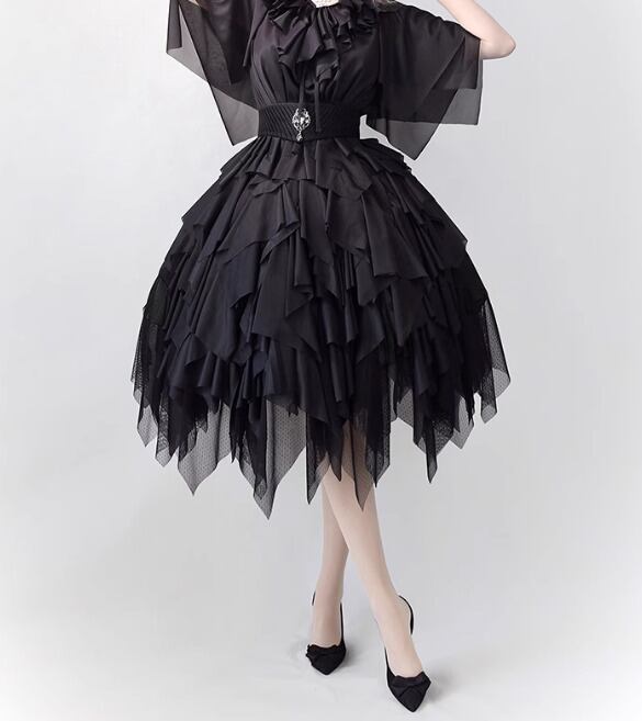 【納期60日】ロリータファッション スカート のみ 6色 ミモレ丈 アシンメトリー レイヤード ゴシック 暗黒系 セクシー 妖艶 ゴージャス レディース イベント