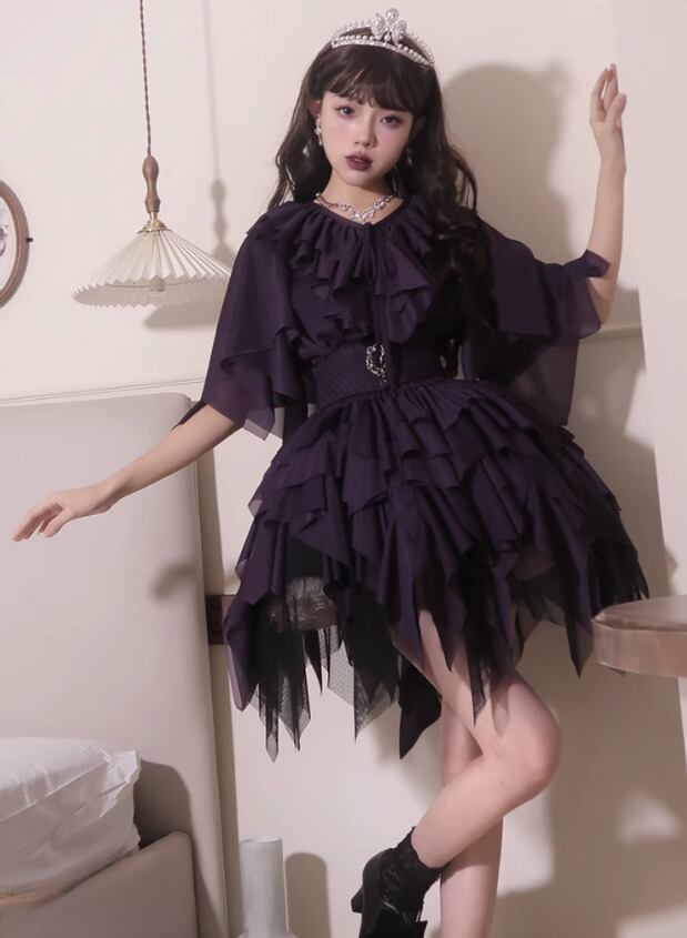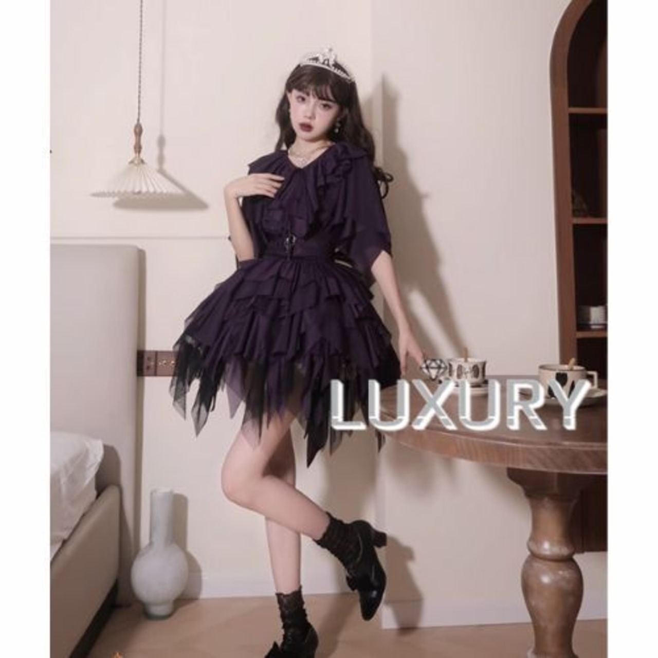 【納期60日】ロリータファッション スカート のみ 6色 ミニ丈 ショート丈 膝上 アシンメトリー レイヤード ゴシック 暗黒系 妖精 ゴージャス レディース イベント