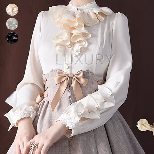ロリータファッション ブラウス のみ 3色 フリル 長袖 ロココ調 お嬢様 バロック風 エレガント 大人可愛い 上品 春秋コーデ デート お茶会 デイリー