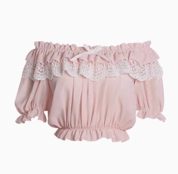 ロリータファッション オフショルダー インナートップス のみ 4色 半袖 シフォン かわいい ガーリー フェミニン 夏コーデ 夏服 デイリー