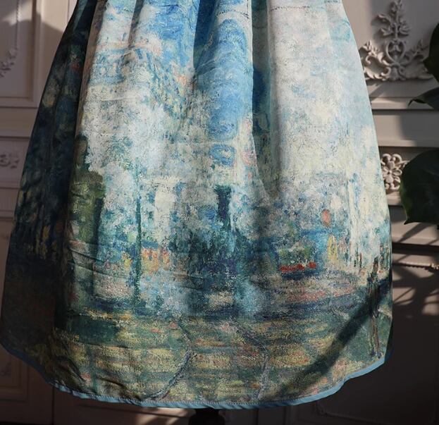 油画を思わせる美しいプリントが施されており、身に纏うことで優雅な雰囲気を演出します!