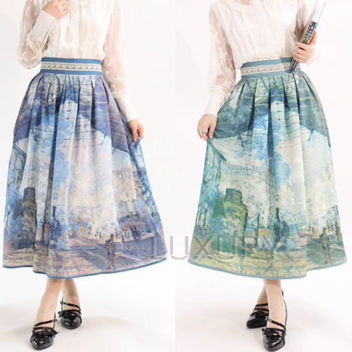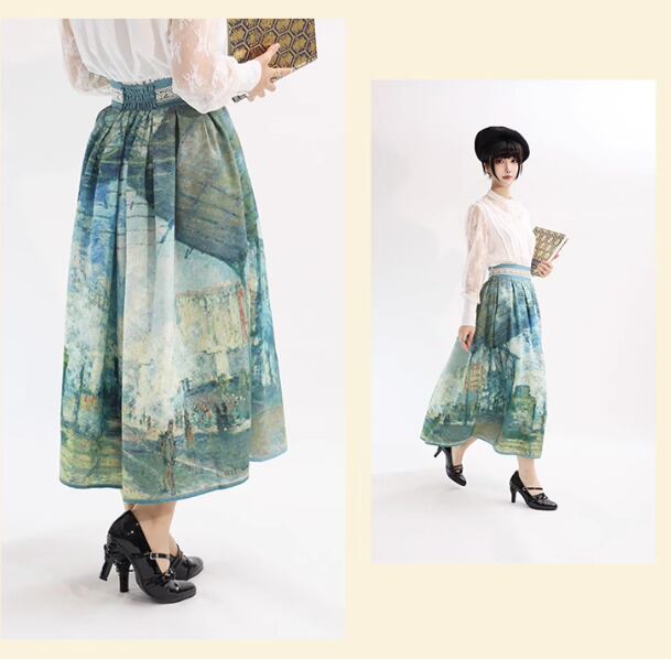 エレガントでレトロな油画プリントのスカートが新登場です!