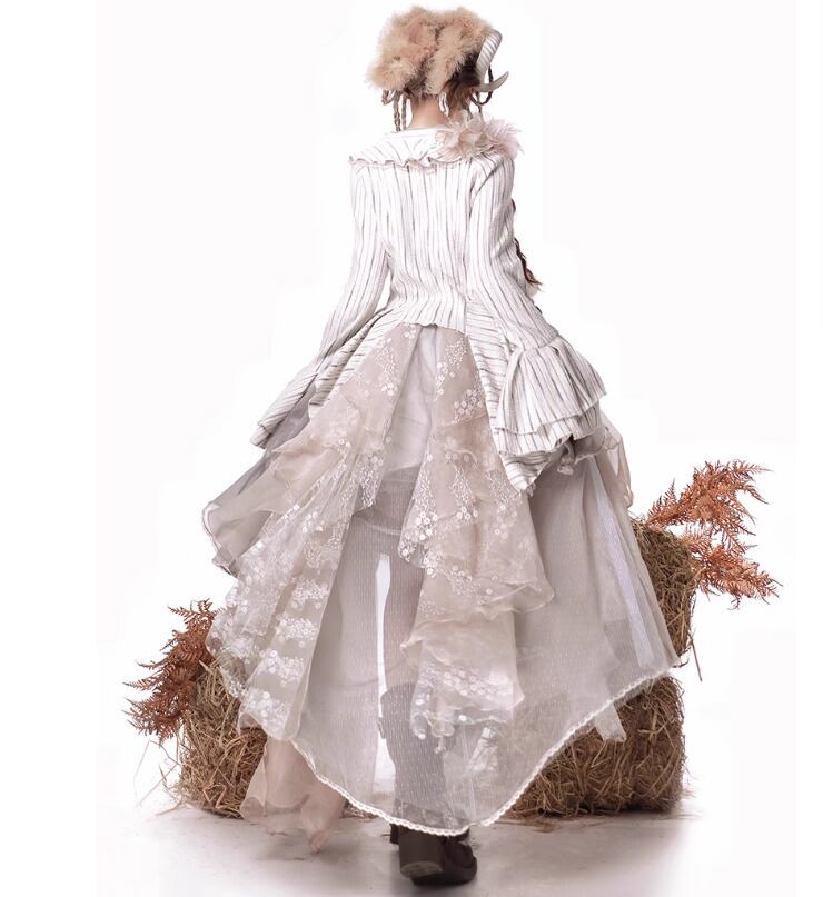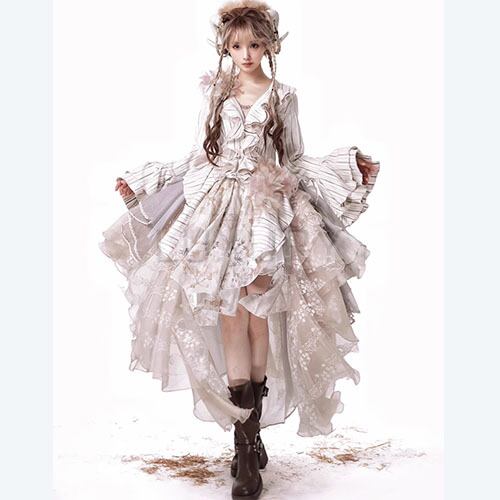 クラシカルロリータ ジャンパースカート +ジャケット セット ストライプ ギャザー フリル シフォン 妖精 魔法使い ガーリー ゴージャス 春秋コーデ イベント 撮影 お茶会