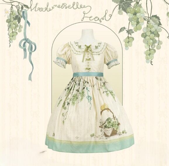 ロリータファッション ワンピース のみ ひざ丈 ミディアム 刺繍 レトロ 森ガール 童話風 お嬢様 かわいい ガーリー 上品 夏コーデ お茶会 デート ピクニック