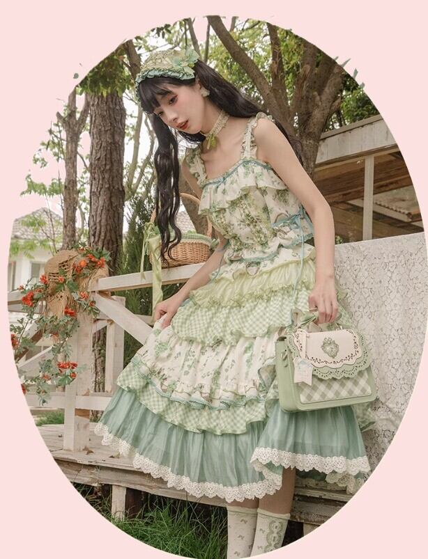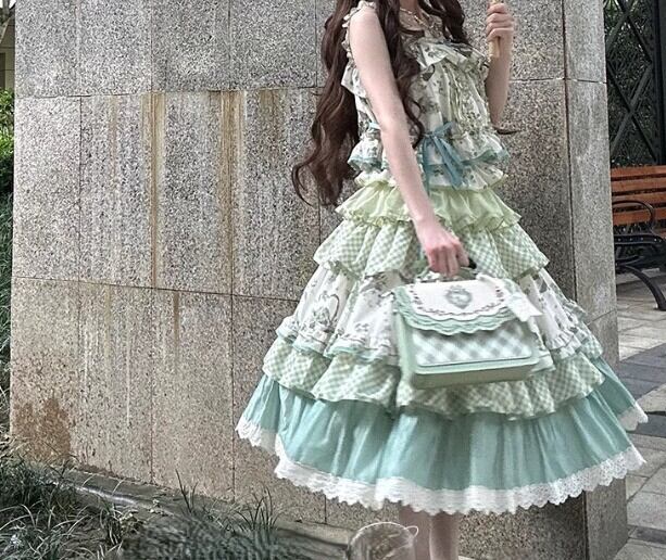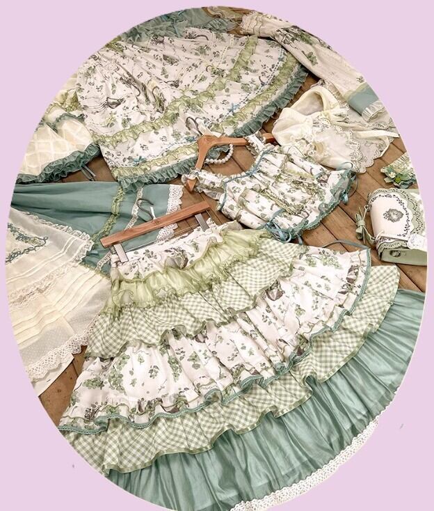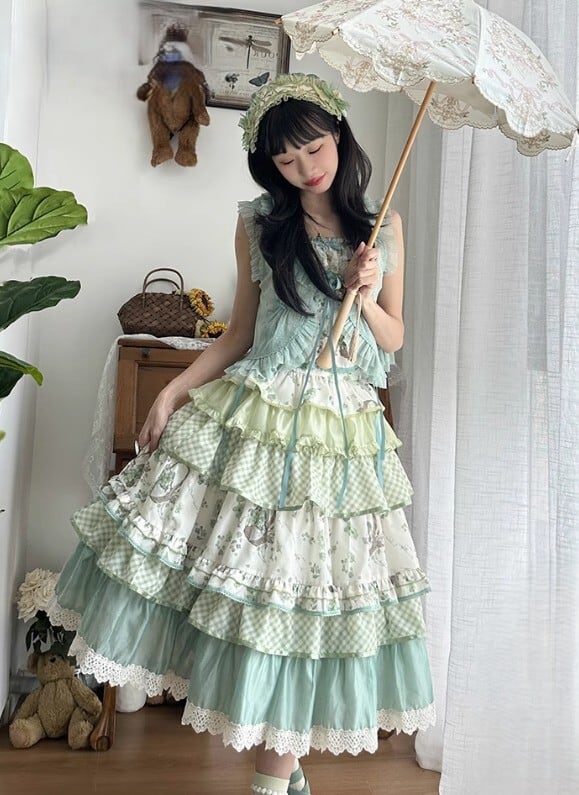 ロリータファッション スカート のみ ひざ下丈 ミモレ丈 チェック柄 ギャザー フレア 森ガール 童話風 大人可愛い ガーリー 上品 夏コーデ お茶会 デート ピクニック デイリー