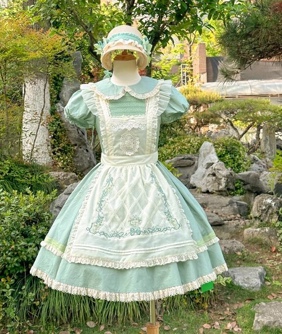 ロリータファッション エプロン のみ フリル レース 刺繍 森ガール 童話風 大人可愛い 清楚 ガーリー 上品 夏コーデ お茶会 イベント ピクニック デイリー