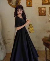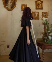 【納期1ヶ月】セミロリータ ワンピース リボン付き のみ ロング丈 半袖 フレンチクラシック ブラック エレガント 大人可愛い 夏コーデ デイリー