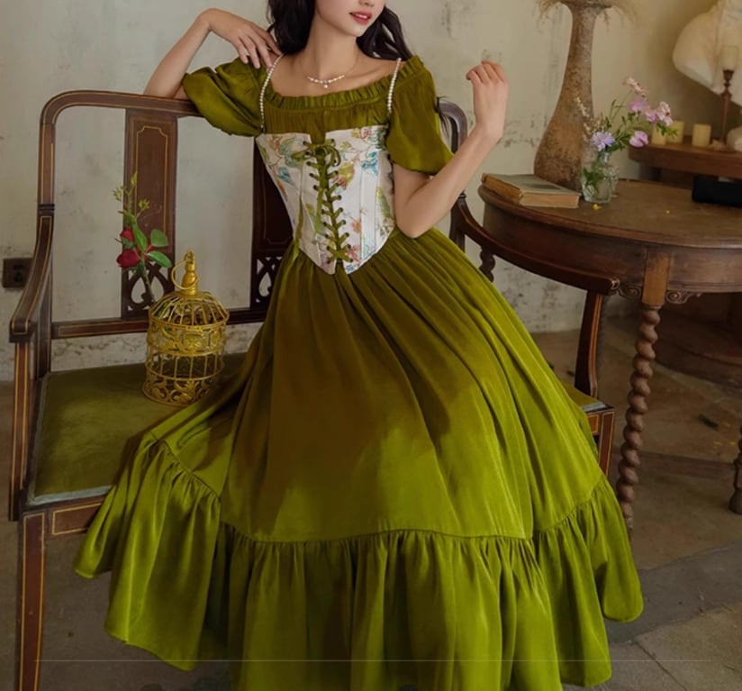 【納期1ヶ月】セミロリータ ワンピース のみ ロング丈 半袖 オフショルダー スクエアネック フレンチクラシック エレガント 大人可愛い 夏コーデ デイリー