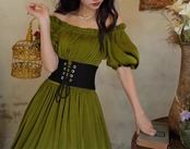 セミロリータ ワンピース のみ ロング丈 半袖 オフショルダー スクエアネック フレンチクラシック エレガント 大人可愛い 夏コーデ デイリー