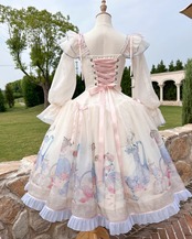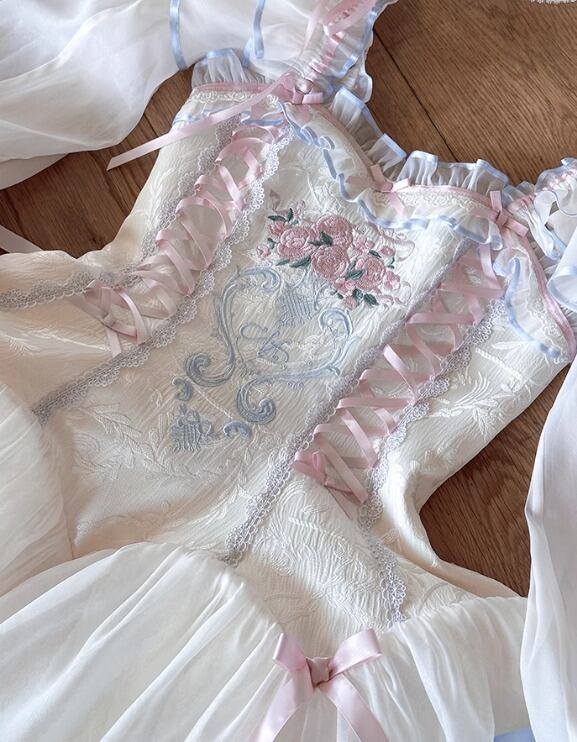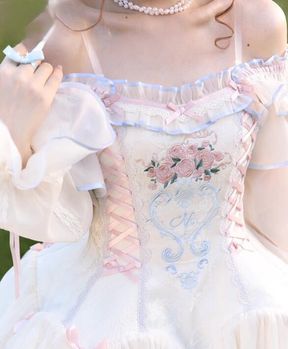 優雅かつ軽やかな雰囲気を楽しみながら、普段使いにもおすすめな一着で、まるで童話の世界から飛び出したような印象を与えます。
