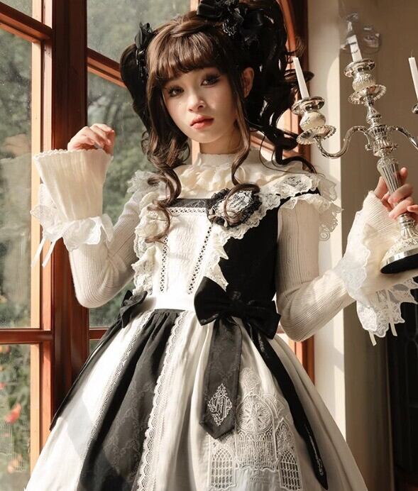 ゴスロリファッション ゴスロリ ブラウス のみ 長袖 レトロ 古風 お嬢様 文学少女 レース袖 ガーリー スウィート 秋冬コーデ お茶会 お呼ばれ デート
