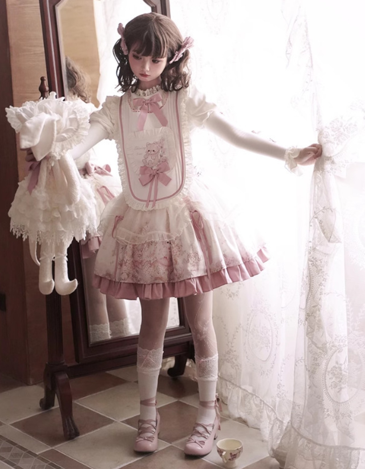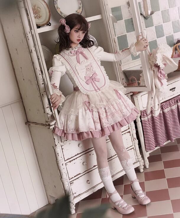 甘ロリ エプロン のみ フリル くまさん リボン お嬢様 ドール風 かわいい ゆめかわ ゆるふわ ラブリー メルヘン 春秋コーデ イベント 撮影 舞台 撮影用