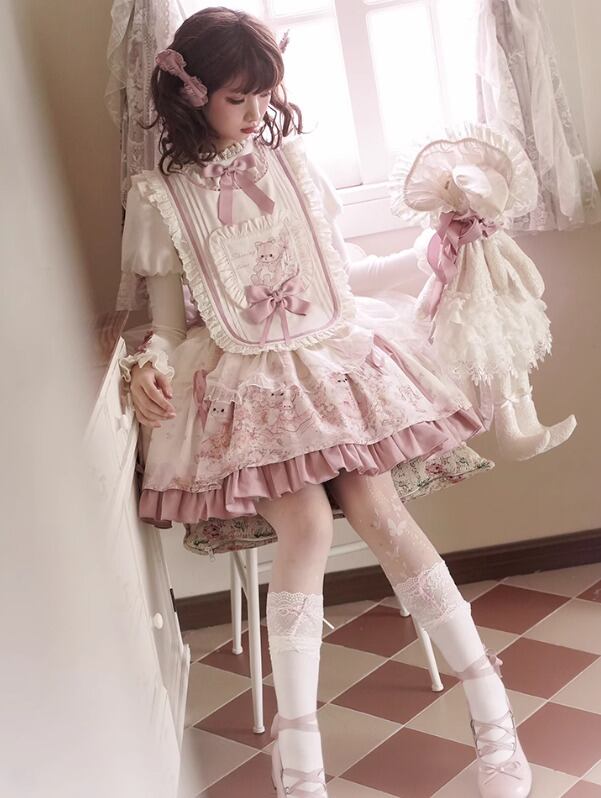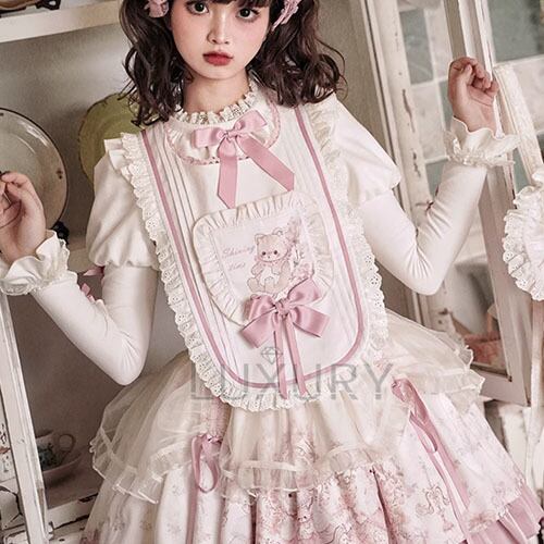 甘ロリ エプロン のみ フリル くまさん クマちゃん クマさん リボン お嬢様 ドール風 かわいい ゆめかわ ゆるふわ ラブリー メルヘン 春秋コーデ イベント 撮影 舞台 撮影用