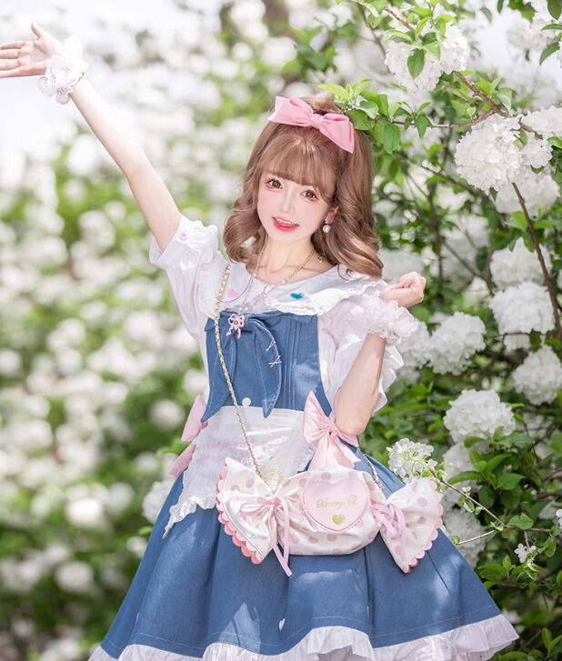 ロリータファッション インナー ブラウス のみ フリル 半袖 童話風 カジュアル ガーリー スウィート 春夏コーデ 普段着 普段使い デイリー お散歩