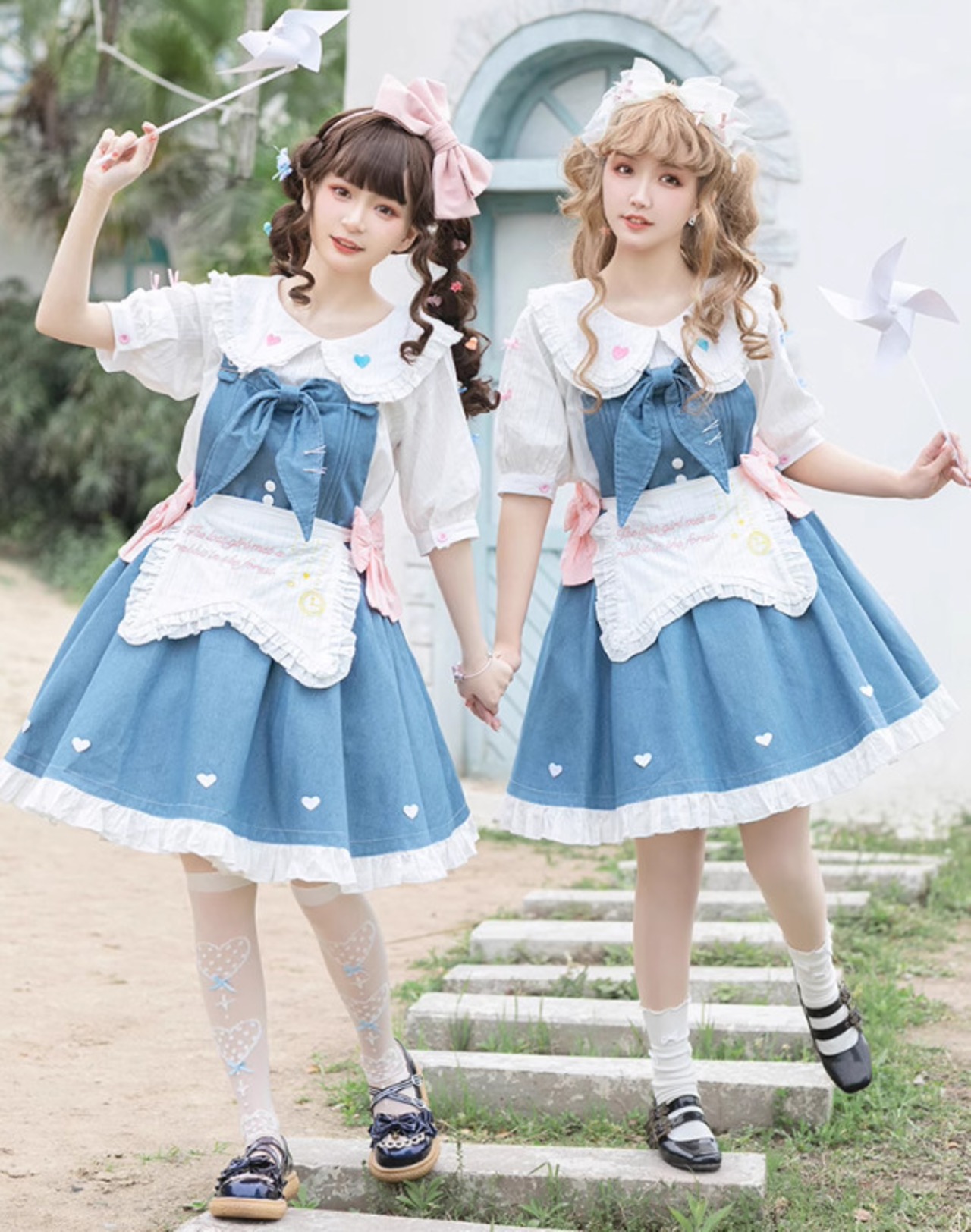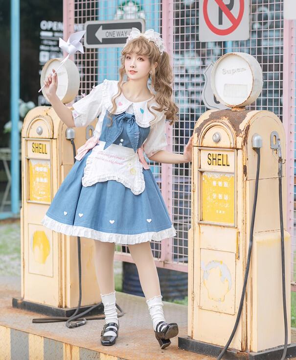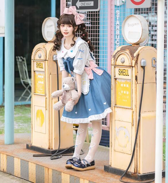 ロリータファッション 腰エプロン のみ リボン 童話風 カジュアル レトロ ガーリー スウィート 春夏コーデ 普段着 普段使い デイリー お散歩