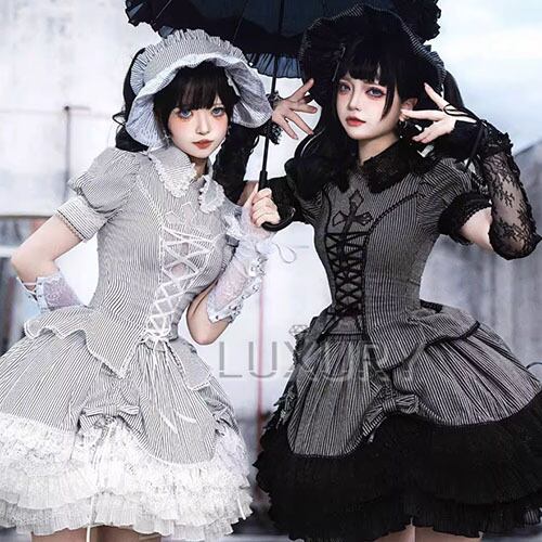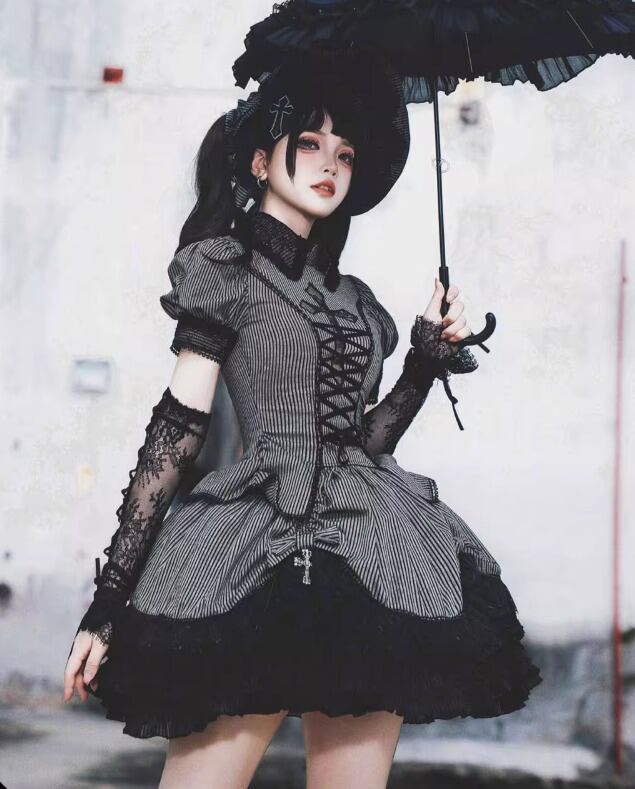 優美なレースとストライプデザインが融合し、暗黒系ファッションに抜群のインパクトを与えます!