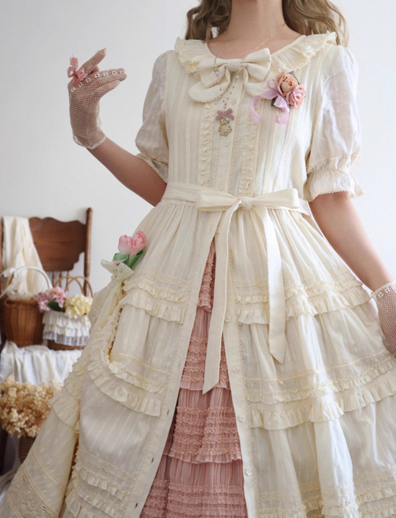古風でありながらもゴージャスな雰囲気を持つこのワンピースは、お茶会や特別なイベントにも最適なアイテムです。