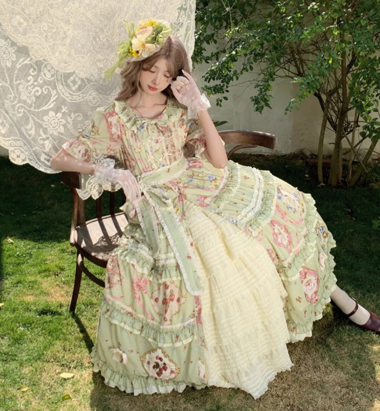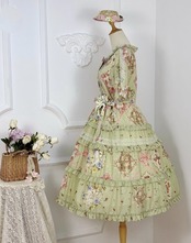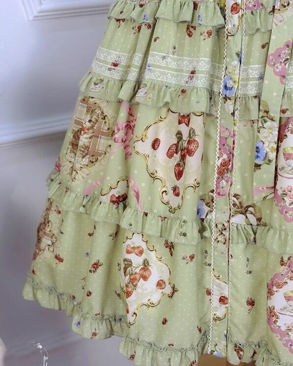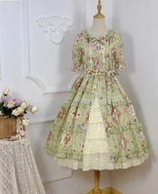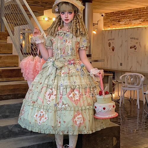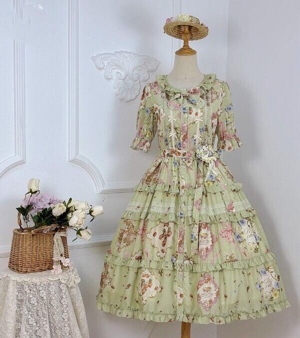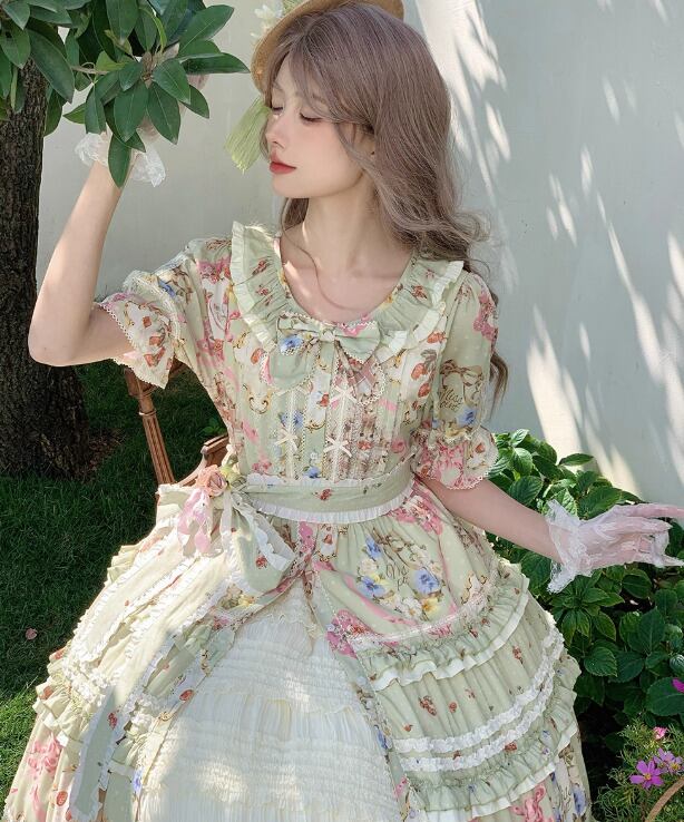 【納期40日】ロリータファッション ワンピース +細ベルトのみ 花柄 フリル ロング丈 半袖 お嬢様 森ガール カジュアル ガーリー 春夏コーデ お茶会 イベント