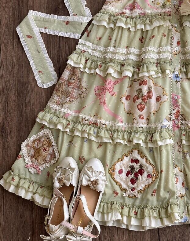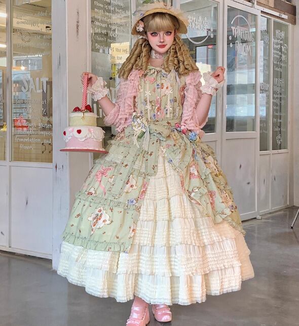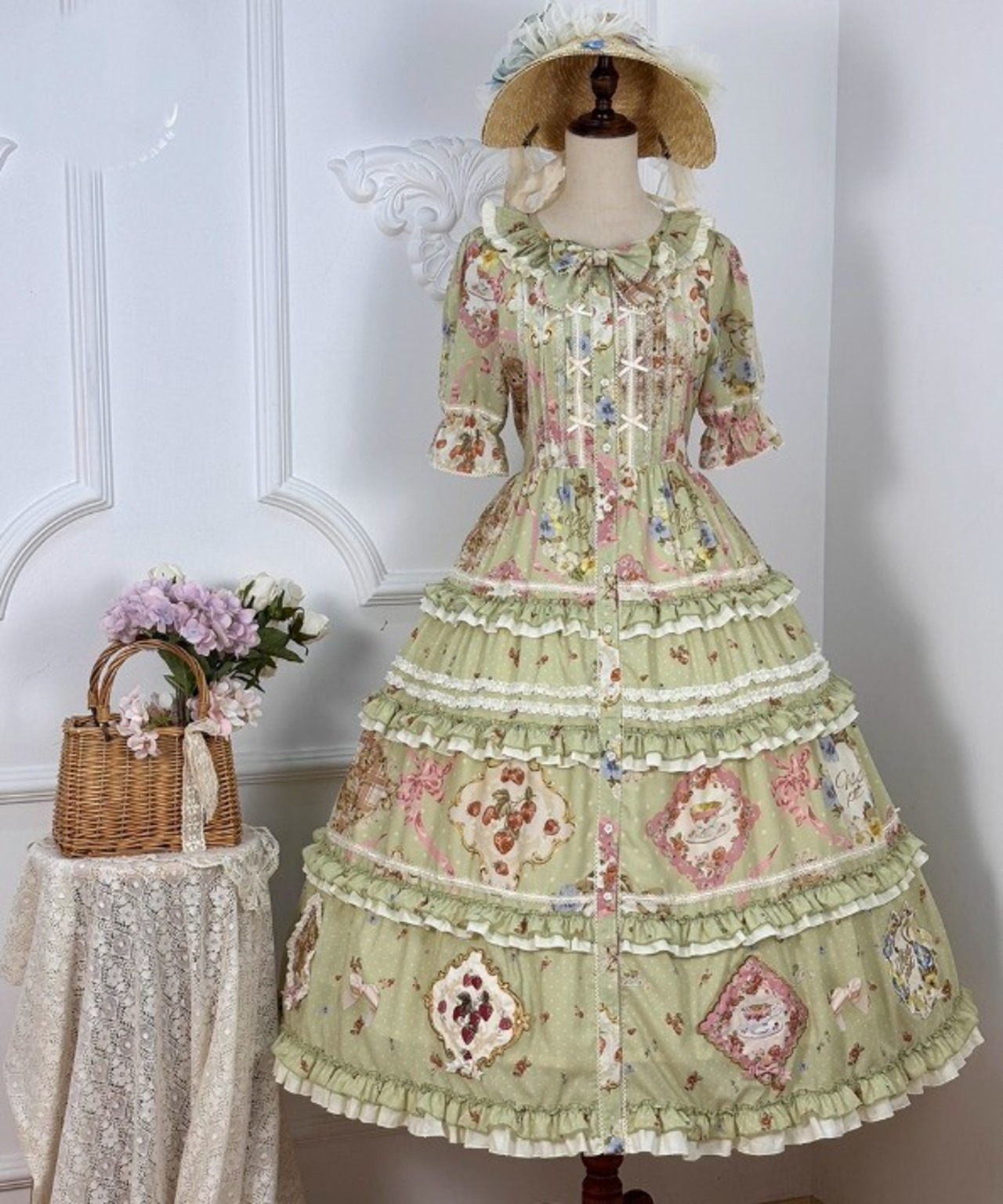 【納期40日】ロリータファッション ワンピース ポケット付き 花柄 お花 フリル ロング丈 半袖 お嬢様 森ガール カジュアル ガーリー 春夏コーデ お茶会 イベント