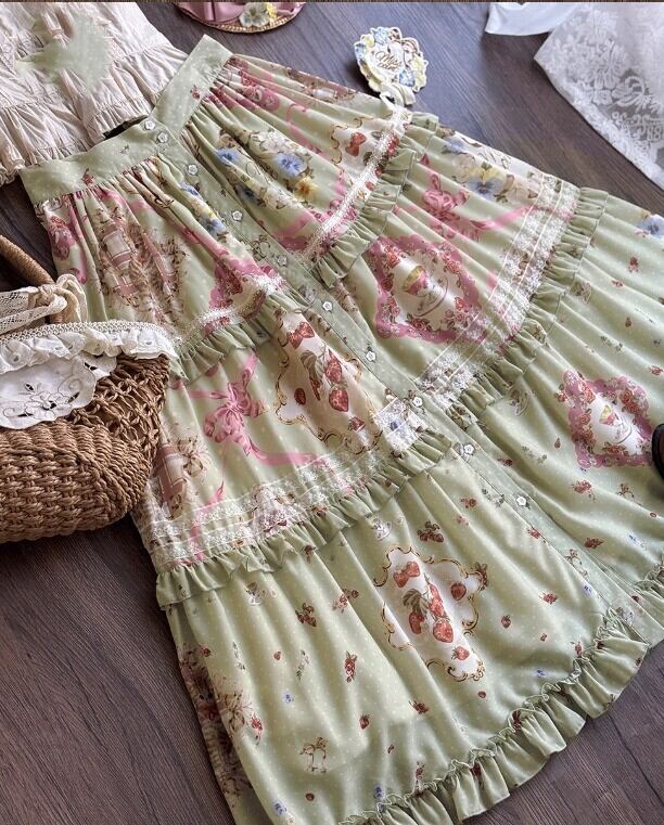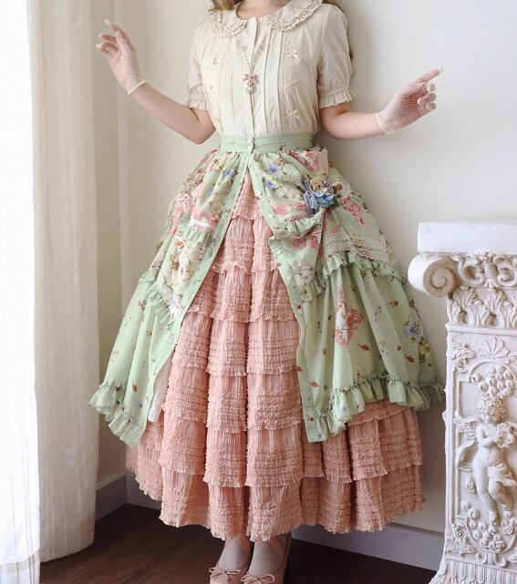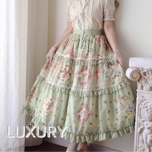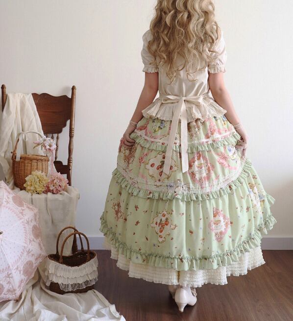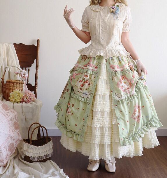 【納期40日】ロリータファッション スカート のみ 花柄 お花 フリル ロング丈 お嬢様 森ガール カジュアル ガーリー スウィート 春夏コーデ お茶会 お散歩 イベント