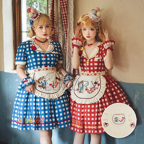 このエプロンは、アメリカンダイナー風のデザインに可愛らしい