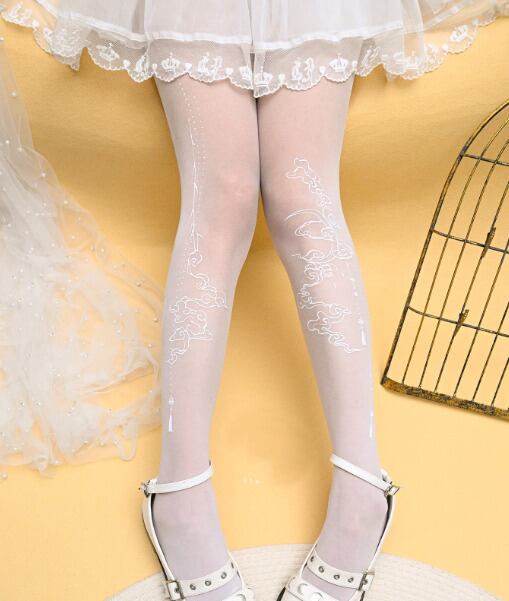 ロリータファッション 華ロリ 中華ロリ タイツ 2色 魔法使い 20デニール 華やか 幻想的 中華風 ファンタジー 夏 夏物 夏コーデ お茶会 イベント 夏素材 涼し気素材 撮影