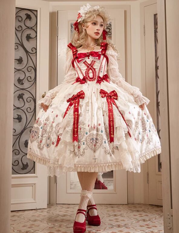 クラシカルロリータ クラロリ ジャンパースカート のみ 2タイプ 4色 ひざ下丈 ミモレ丈 リボン レース 貴婦人 貴族 お嬢様 ゴージャス レディース イベント 舞台 撮影