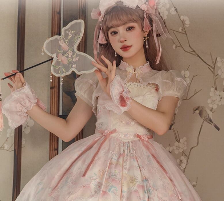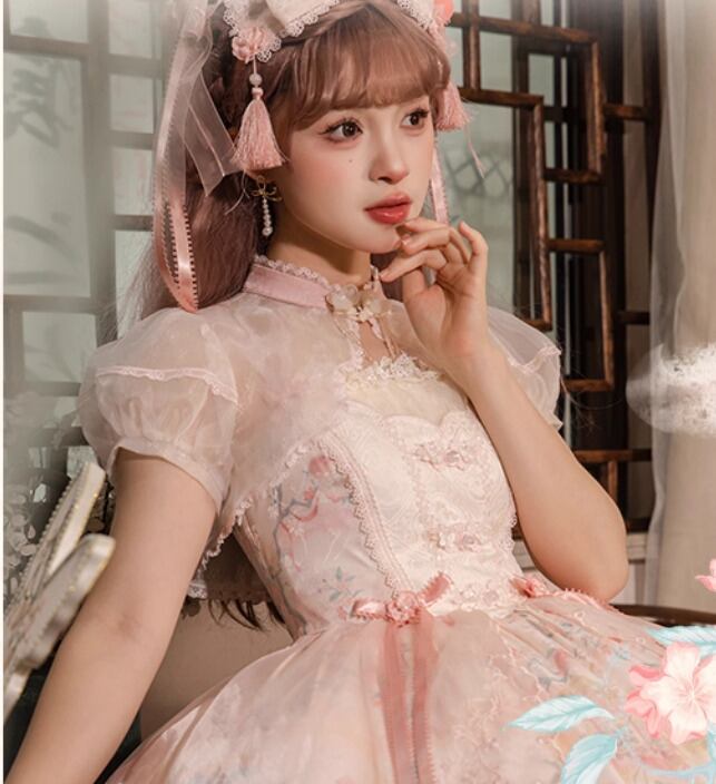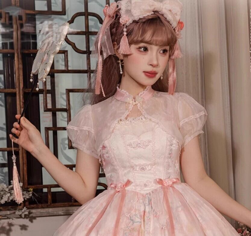 華ロリ 中華ロリ ボレロ のみ トップス 半袖 シフォン 透け感 シースルー アジアン 中国風 チャイナ フェミニン 華やか 春夏コーデ 撮影 イベント