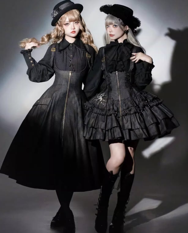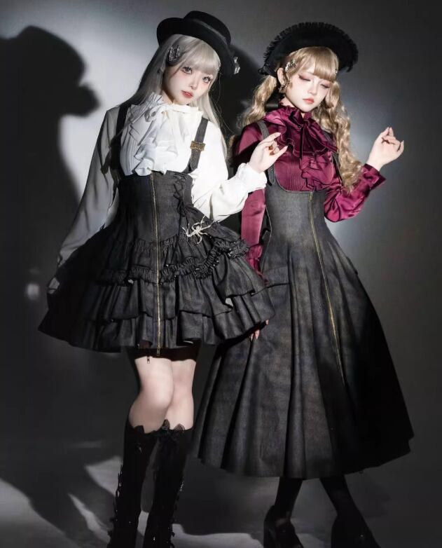 スチームパンク steampunk コルセット風 ジャンパースカート のみ デニム ロング丈 フレンチクラシカル カジュアル 大人可愛い レディース お茶会 普段着 デイリー