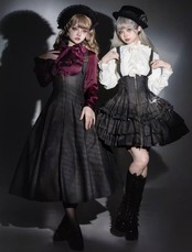 こちらのジャンパースカートは、コルセット風デザインと