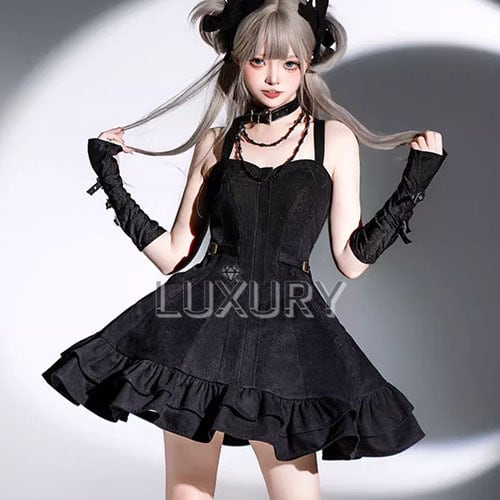 スチームパンク steampunk ジャンパースカート のみ パイソン柄 デニム フリル ミニ丈 ショート丈 膝上 カジュアル 大人可愛い レディース デイリー