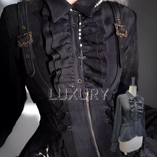 スチームパンク steampunk ブラウス デニムシャツ +腰ベルト のみ フリル 長袖 カジュアル 文学少女 大人可愛い レディース お茶会 デイリー