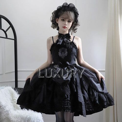 ゴスロリファッション ゴスロリ キャミソール ジャンパースカート のみ フリル ミニ丈 ショート丈 膝上 セクシー ゴージャス エレガント レディース イベント
