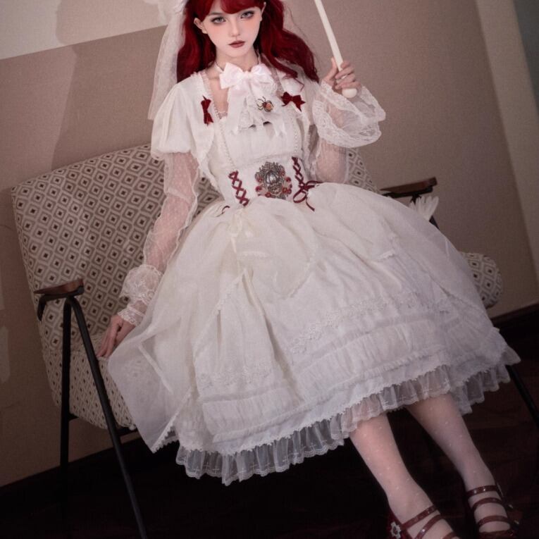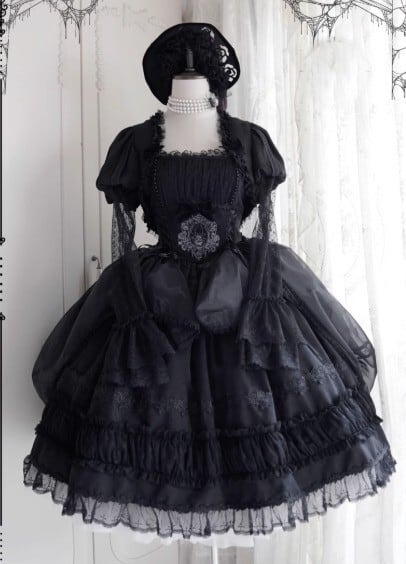ゴスロリファッション ゴスロリ ジャンパースカート のみ 3色 膝丈 ひざ丈 ミディアム スパイダー チュール 暗黒系 妖艶 ゴージャス レディースファッション イベント 撮影 舞台 撮影用