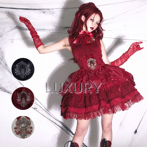 ゴスロリファッション ゴスロリ ジャンパースカート のみ 3色 ミニ丈 ショート丈 スパイダー チュール 暗黒系 妖艶 ゴージャス レディースファッション イベント 撮影 舞台