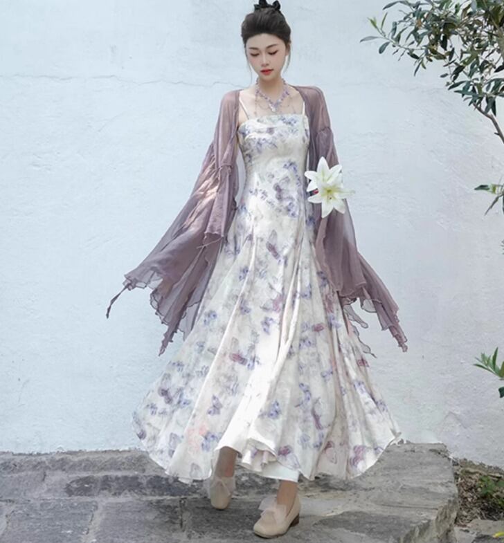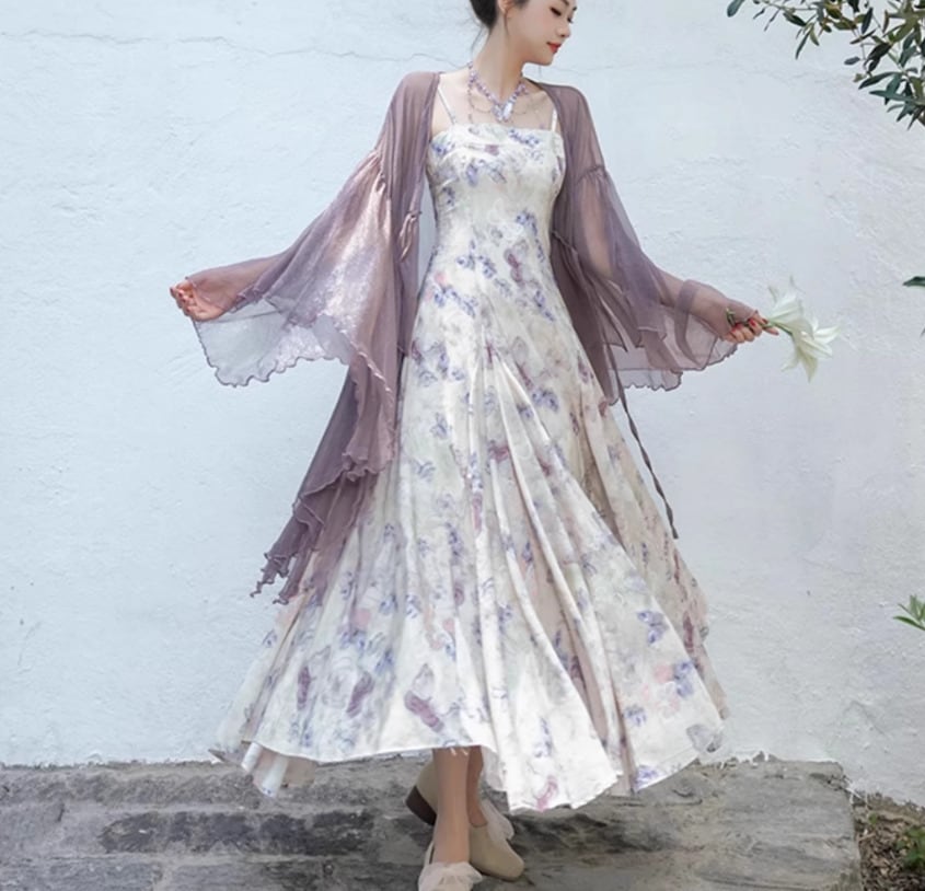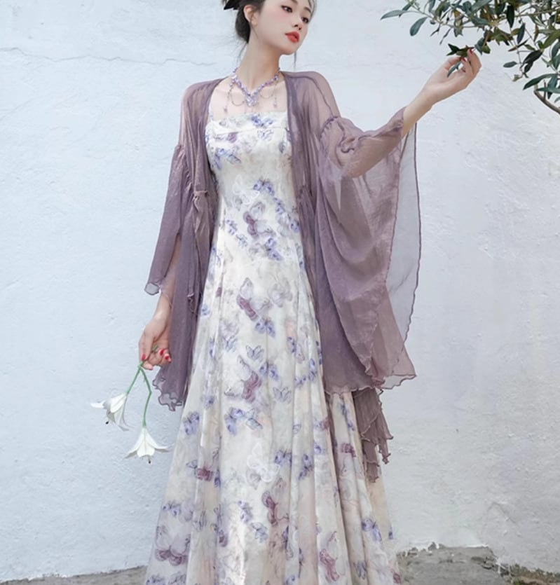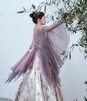 セミロリータ ショール のみ 中国風 チャイナ お嬢様 シフォン 透け感 エレガント 幻想的 優雅 上品 清楚 ナチュラル 大人可愛い 春夏コーデ お茶会 デート