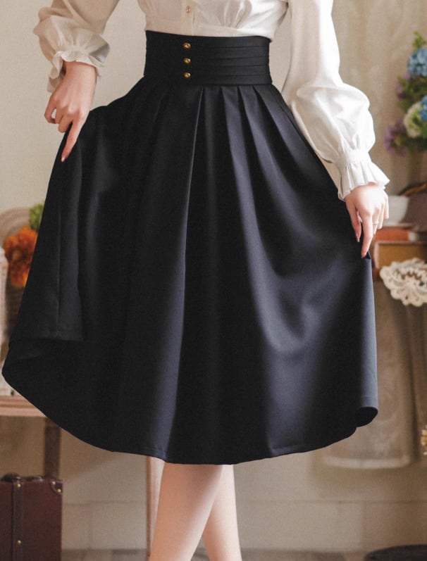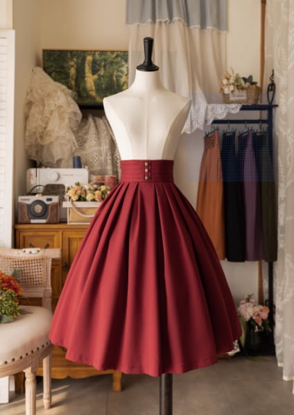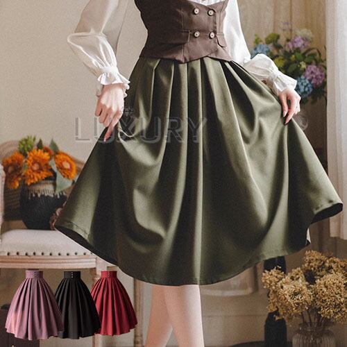 クラシカルロリータ クラロリ スカート のみ 4色 膝丈 ひざ丈 ミディアム コルセット風 レトロ 古風 森ガール ガーリー ナチュラル 清楚 春秋コーデ お茶会 デイリー デート