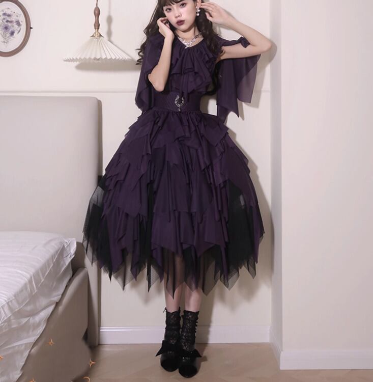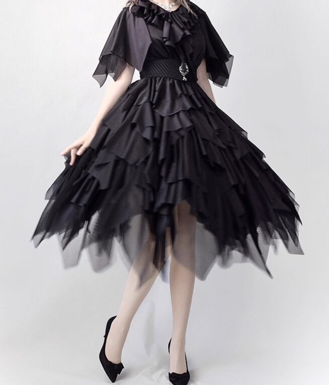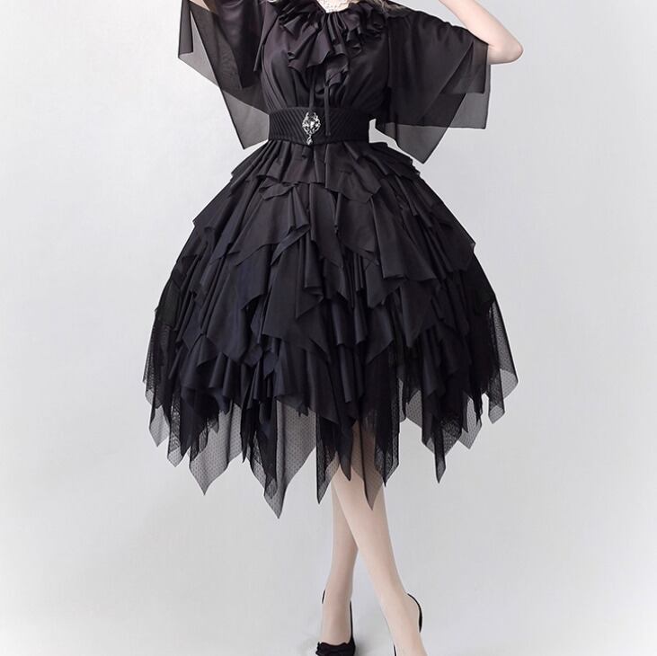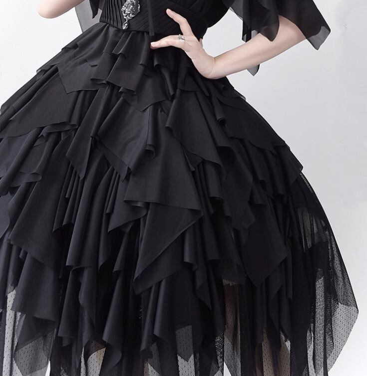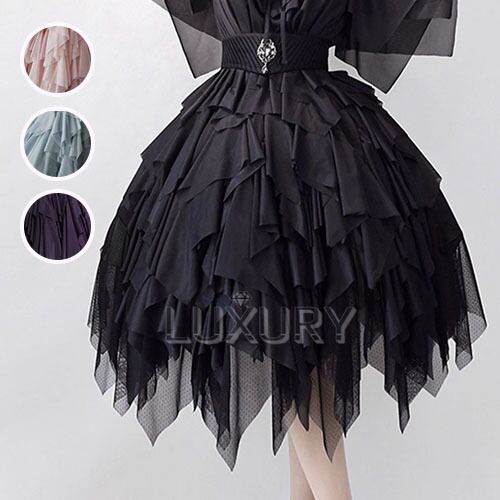 ゴスロリファッション ゴスロリ スカート のみ ひざ下丈 ミモレ丈 重ねチュール 不規則カット きれいめ 通年 レディースファッション イベント loli6031