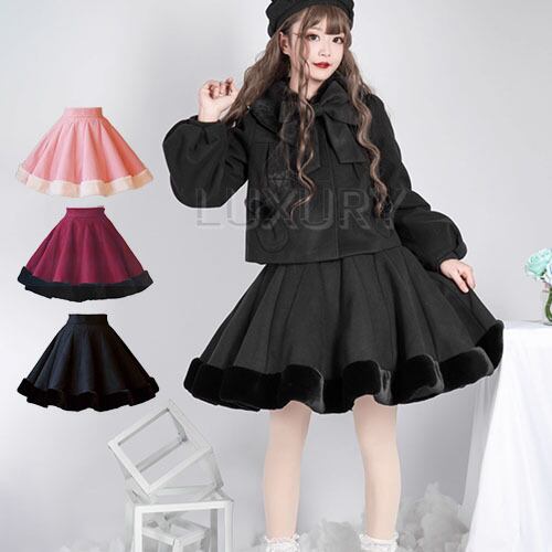 甘ロリ スカート 3色 ミニ丈 ショート丈 膝上 うさぎ毛風 お嬢様 かわいい ゆめかわ ゆるふわ ラブリー メルヘン 冬 冬物 冬コーデ 冬服 普段着 普段使い デイリー デート