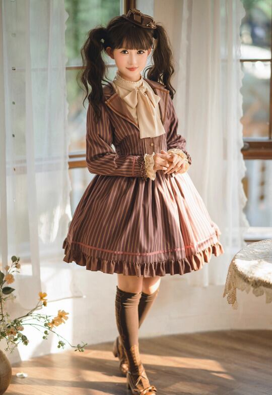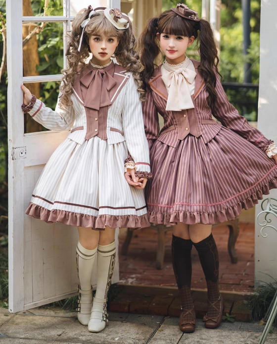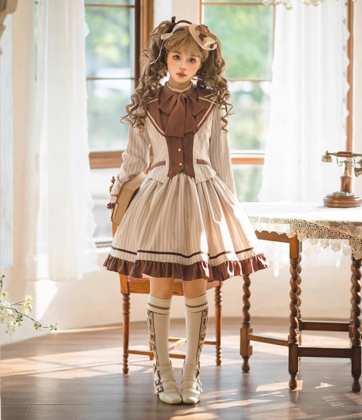【納期40日】クラシカルロリータ クラロリ スカート のみ ストライプ チョコレート チョコ ミニ丈 ショート丈 膝上 レトロ 古風 スウィート 秋冬コーデ お茶会 イベント