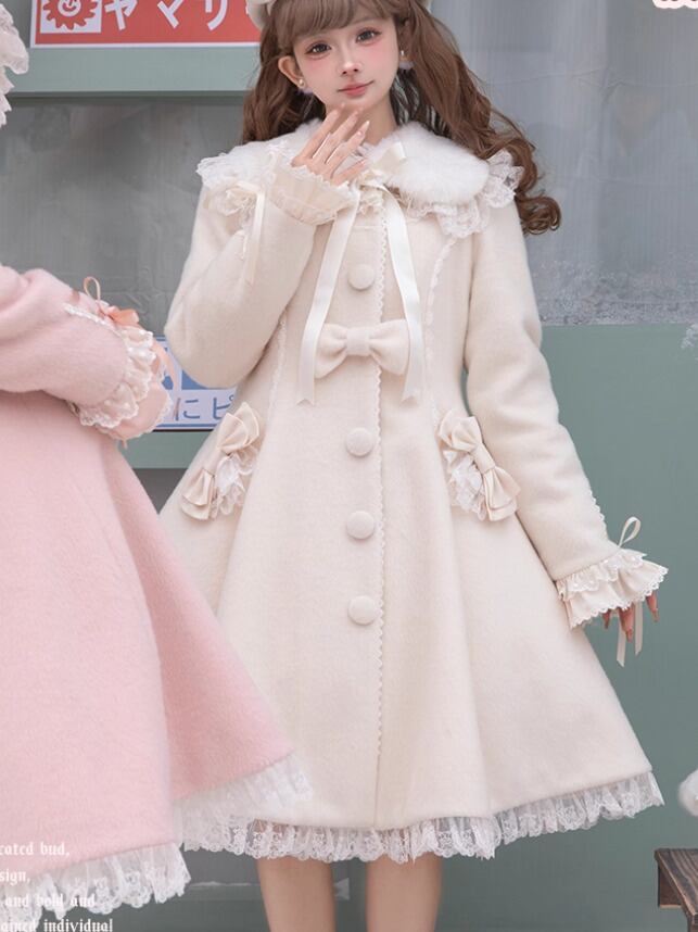 甘ロリ 姫ロリ ロングコート のみ リボン レース 長袖 お嬢様 かわいい ガーリー ドール スウィート 冬 冬物 冬コーデ 冬服 クリスマス バレンタイン お茶会