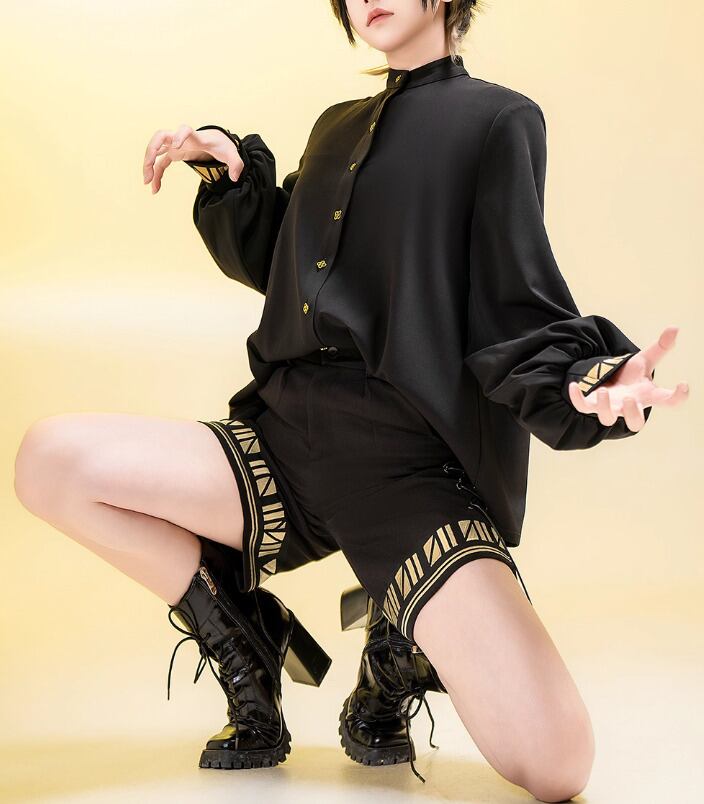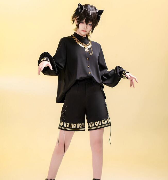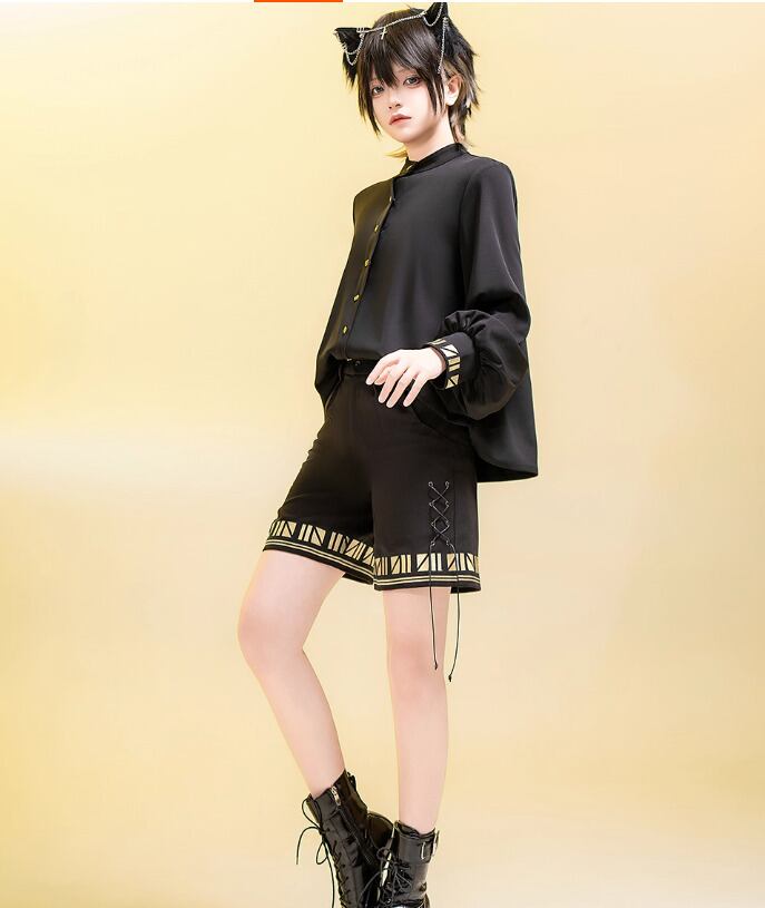 男装 皇子 ショートパンツ のみ 黒猫 童話風 ユニセックス レトロ ダークゴシック ストレート 細見え クール カッコいい 格好良い イベント 撮影 舞台 撮影用